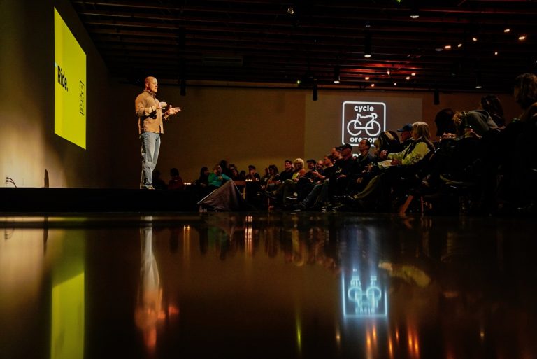 The January-in-Portland drizzle couldn’t dampen the spirits of excited cyclists waiting for the doors to open at The Loft at