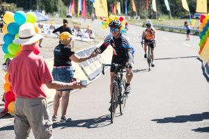 Camp was bustling extra early on Wednesday with many riders keen to get a jump on their long journey. The ride consisted of lots of Cascade Lakes Highway miles and a back roads gravel option through some really beautiful forested area. By the time most riders reached Diamond Lake and heard the raucous welcome and read the funny signs made by the community supporters they had already forgotten how intimidating that last hill was. The beautiful setting and the picturesque lake made all the miles totally worth it.