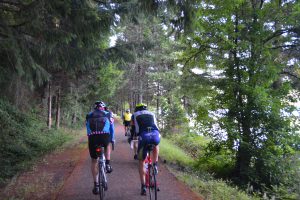 This might be too late to let your riders know but I think the trail used to be a railroad track which was featured in the movie Stand By Me.