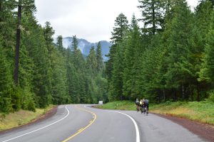Up until now, the road will have been pretty flat. Once on the Old McKenzie Highway, we start gaining altitude. This climb is pretty much up and up, followed by a little more up, until we reach the summit of the Cascades at Dee Wright Observatory. If you look closely during the switchbacks, there is one spot where you can look down and see at least 3 switchbacks just below. This climb is a gentle incline at 5-6% and you’ve laughed in the face of much tougher hills in your day, so it shouldn’t be overly-difficult. And once you reach the top, have a little rest and a snack and take in the view – you’ve earned it.