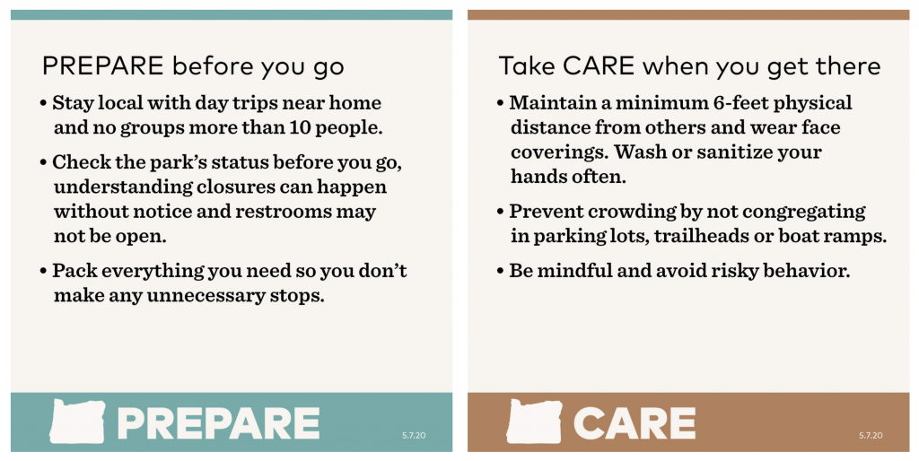 What to know about Oregon’s outdoors right now – Cycle Oregon Champion Sponsor Travel Oregon has a comprehensive web page with up-to-date information on how to best enjoy outdoor recreation in conjunction with Governor Kate Brown’s most recent details on re-opening the state. Looks like a great weekend ahead and we encourage getting outside but please PREPARE before you go & Take CARE when you get there.
