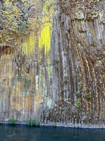 Coming up the Rogue on Day two, the valley floor was flat because the ash flow had filled it completely. Here the ash flow is a thin layer on top of an older lava flow that filled the canyon 750,000 years ago. This is called the Toketee Basalt, named for the famous Toketee Falls, which erupted from vents east of Lemolo Lake and flowed 30 miles down the canyon of the North Fork of the Umpqua, filling it to a depth of 300-400 feet, and leaving a broad barren lava plain in place of a glacier carved valley.