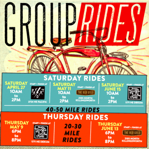 So why should you join us for these group rides? For the fun, for the fitness, and simply for the ride. And, of course, all of these group rides begin and end at your friendly neighborhood establishment, where a well-deserved cold drink awaits you at the end of your journey.