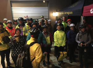 Finally, as a nice way to ring in the holiday season, our friends at Bike Gallery and Nossa Familia led a group of hearty individuals from Cycle Oregon headquarters to Bike the Lights at Winter Wonderland. Combining the best parts of SantaCon and a peloton, this course decked out in lights and holiday decorations was open for one night only exclusively to bikes – no cars allowed. Glowing lights, glowing spirits and plenty of crisp, fresh air – this event has all the markings of a tradition in the making.