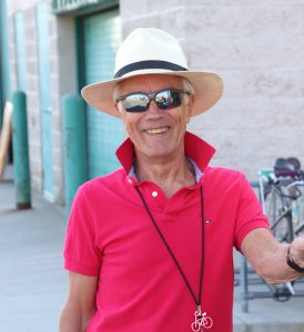 If you’ve done any Cycle Oregon rides in the past, you might recognize Mike as the guy cheering your across the finish line with an icy cold carton of chocolate milk in hand. (Fun fact: Mike is tolerant of lactose, but prefers wine). He is also a mainstay at Rider Services, providing answers to rider’s every query. He enjoys helping people “mellow out” upon arrival and he doesn’t mind standing in the hot sun for hours at a time, so Rider Services and Finish Line seem to be a natural fit. Mike became involved with Cycle Oregon almost two decades ago strictly for the love of cycling – he loves cycling and he loves being around it. Here’s proof – Mike bought his first bike with paper route money, he has worked for both Cycle Oregon and the Community Cycling Center, he met his wife on a bike tour of Ireland, and when traveling he takes bike tours every chance he gets as a way to really immerse himself in a new place.